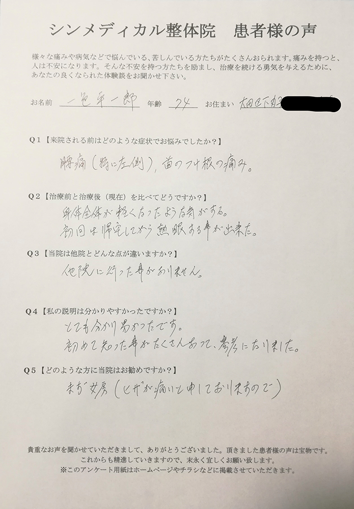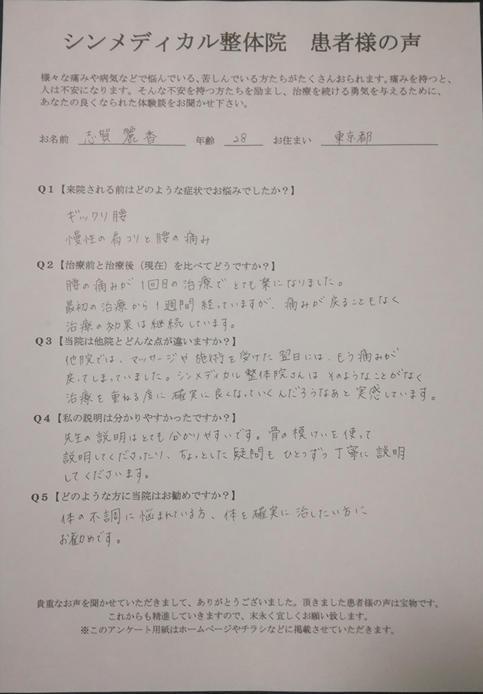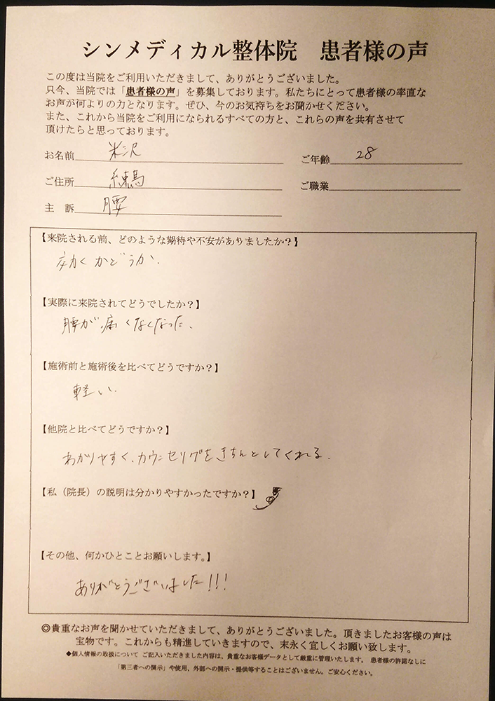 米沢さん / 28才 / 練馬区 / 主訴:腰