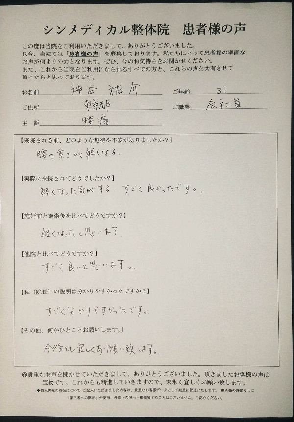 神谷さん / 31才 / 東京都大田区 / 会社員 / 主訴:腰痛