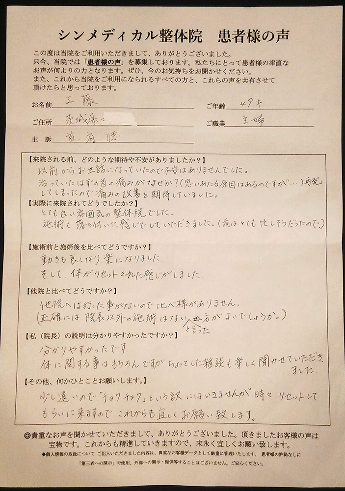 工藤さん / 49才 / 茨城県 / 主婦 / 主訴:首、肩、腰